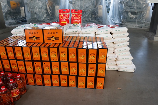 旁邊擺放著一桶桶金黃的食用油,它是生活中不可或缺的調(diào)味品,有了它,每一頓飯菜都能變得更加美味可口。油,也寓意著新的一年里大家的生活能夠如油般滋潤,順順利利,沒有坎坷。