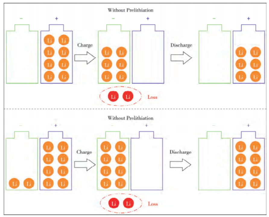 鋰離子電池負(fù)極預(yù)鋰化作用示意圖