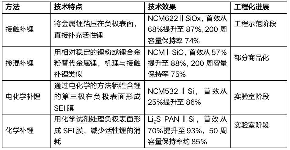 負(fù)極預(yù)鋰化技術(shù)分類及簡介